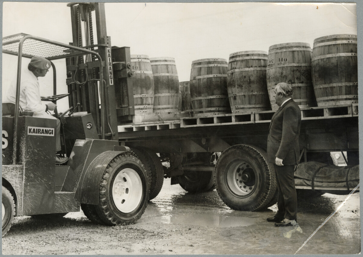 Barrels full of lamb caecums ready to be unloaded into a cool store.