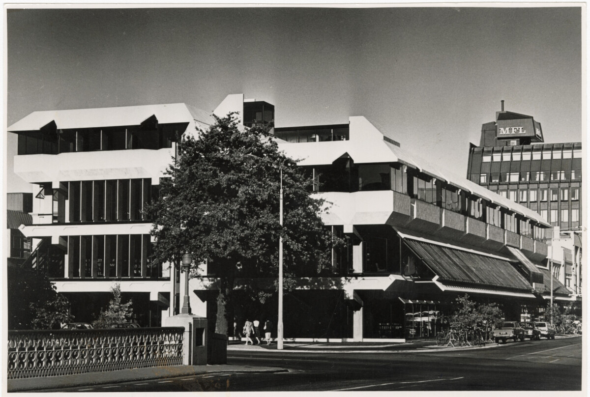Exterior of the Canterbury Public Library on the corner of Gloucester Street and Oxford Terrace, taken from the Gloucester Street bridge.