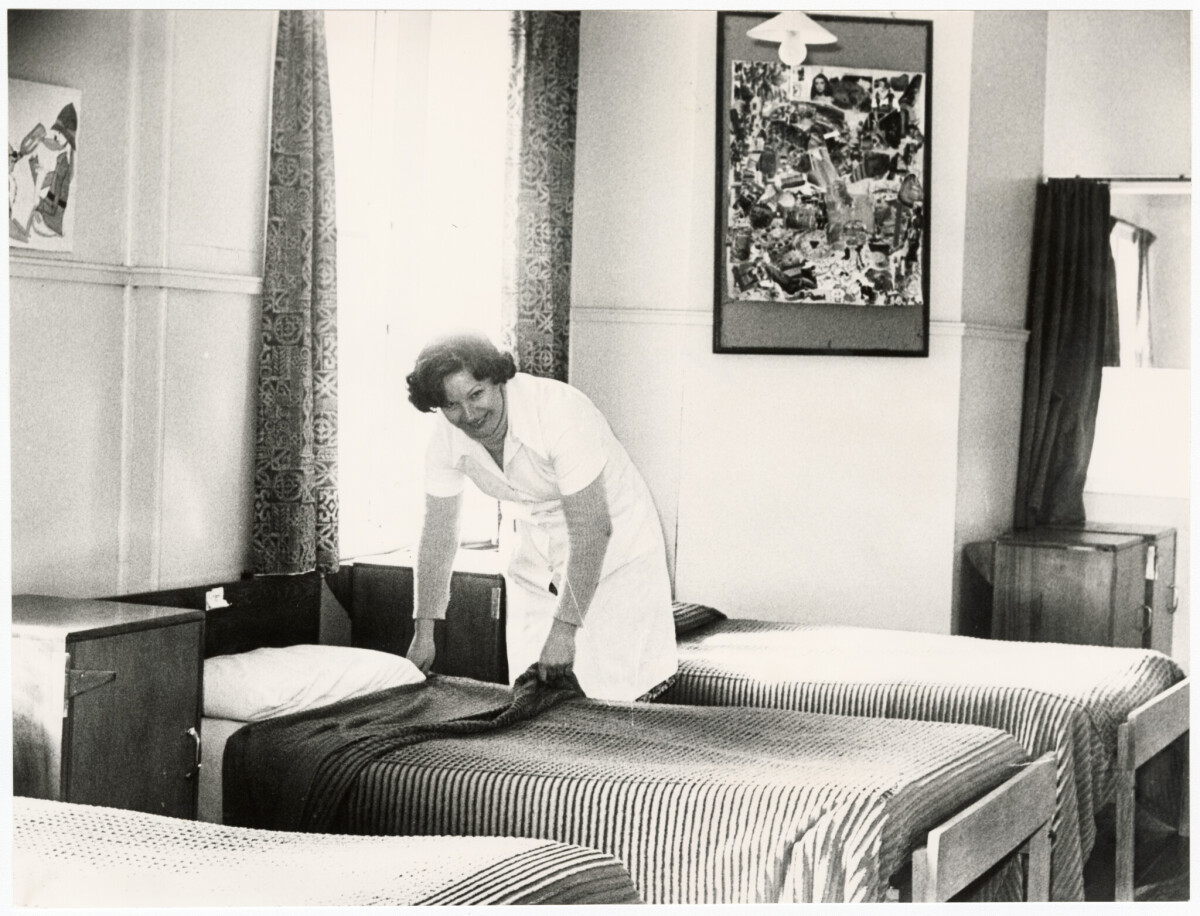 Irene McLennan, assistant matron at Glenelg, making a bed.