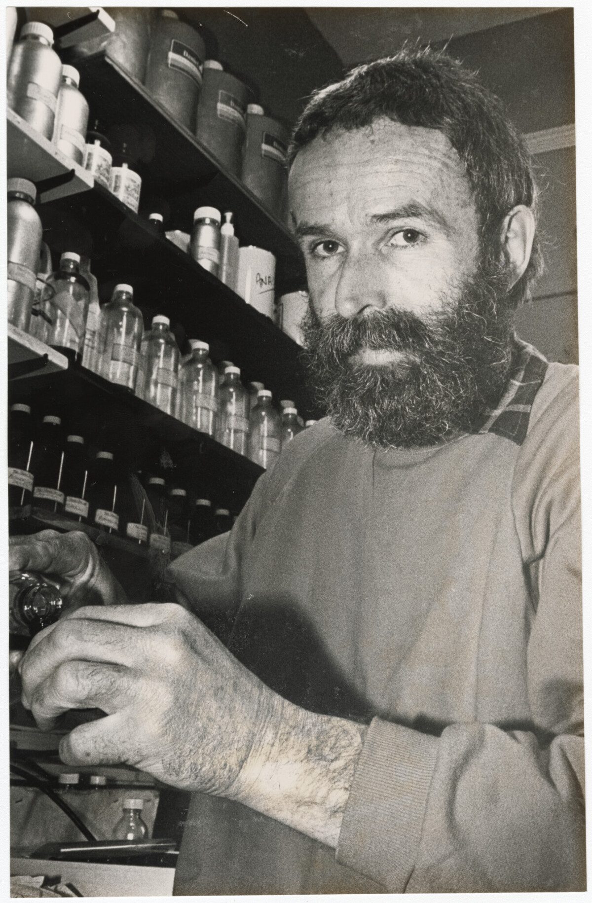 Keith Wyatt preparing the animal product free oils for Manig Oiles. The oils are prepared in the back of his wife's, Glenice Wyatt, shop Fragrance in Merivale.