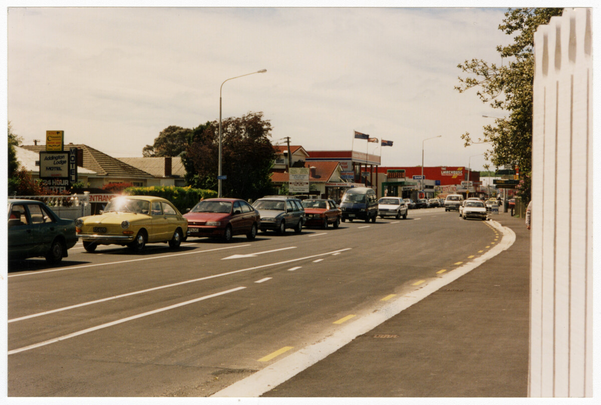 Exterior of the Addington Lodge Motel at 241 Lincoln Road with Happy Valley Chinese takeaway at 255 Lincoln Road and Neumann Real Estate at 257 Lincoln Road in Addington.