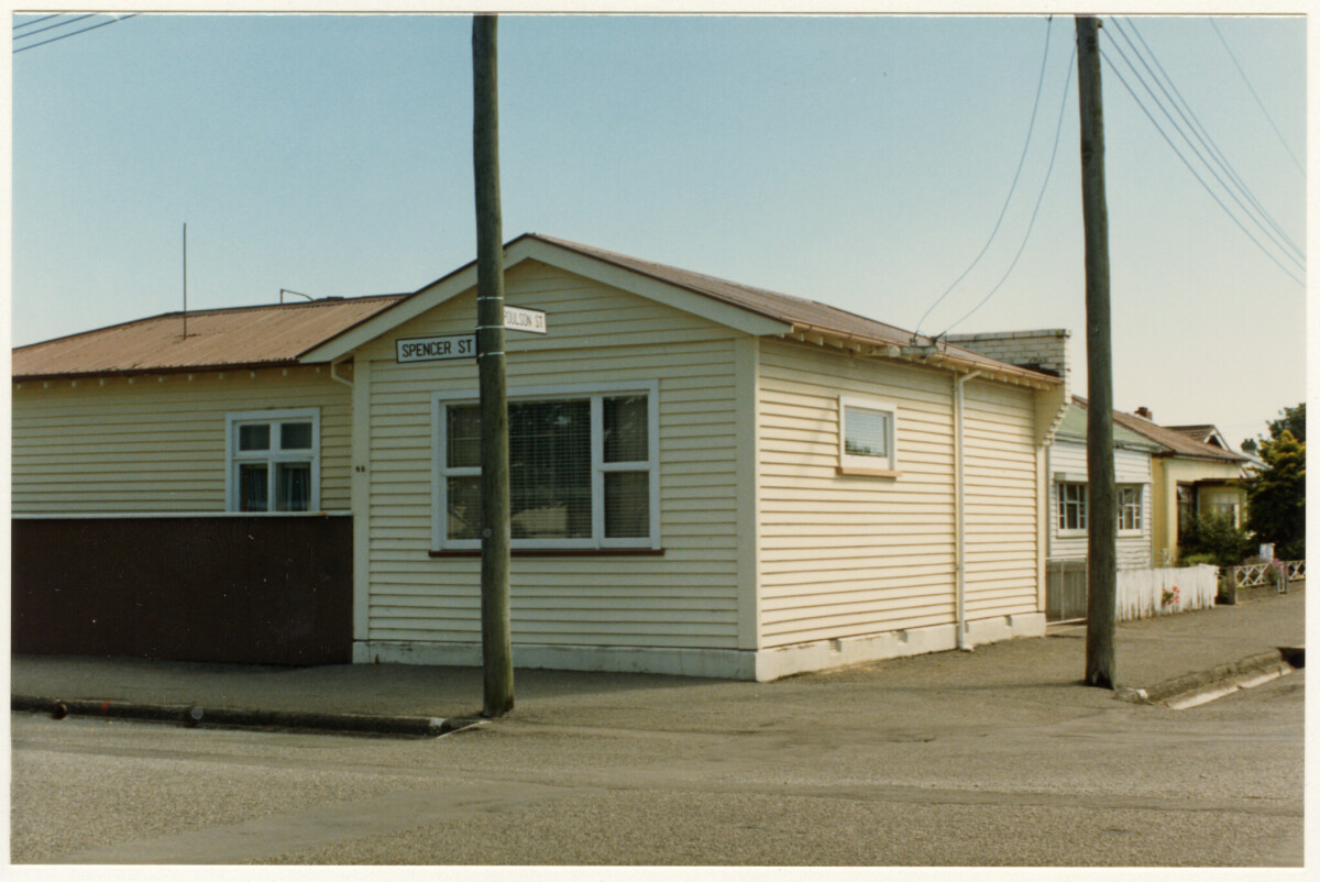 Exterior of a residential house at 49 Spencer Street on the corner with Poulson Street in Addington.