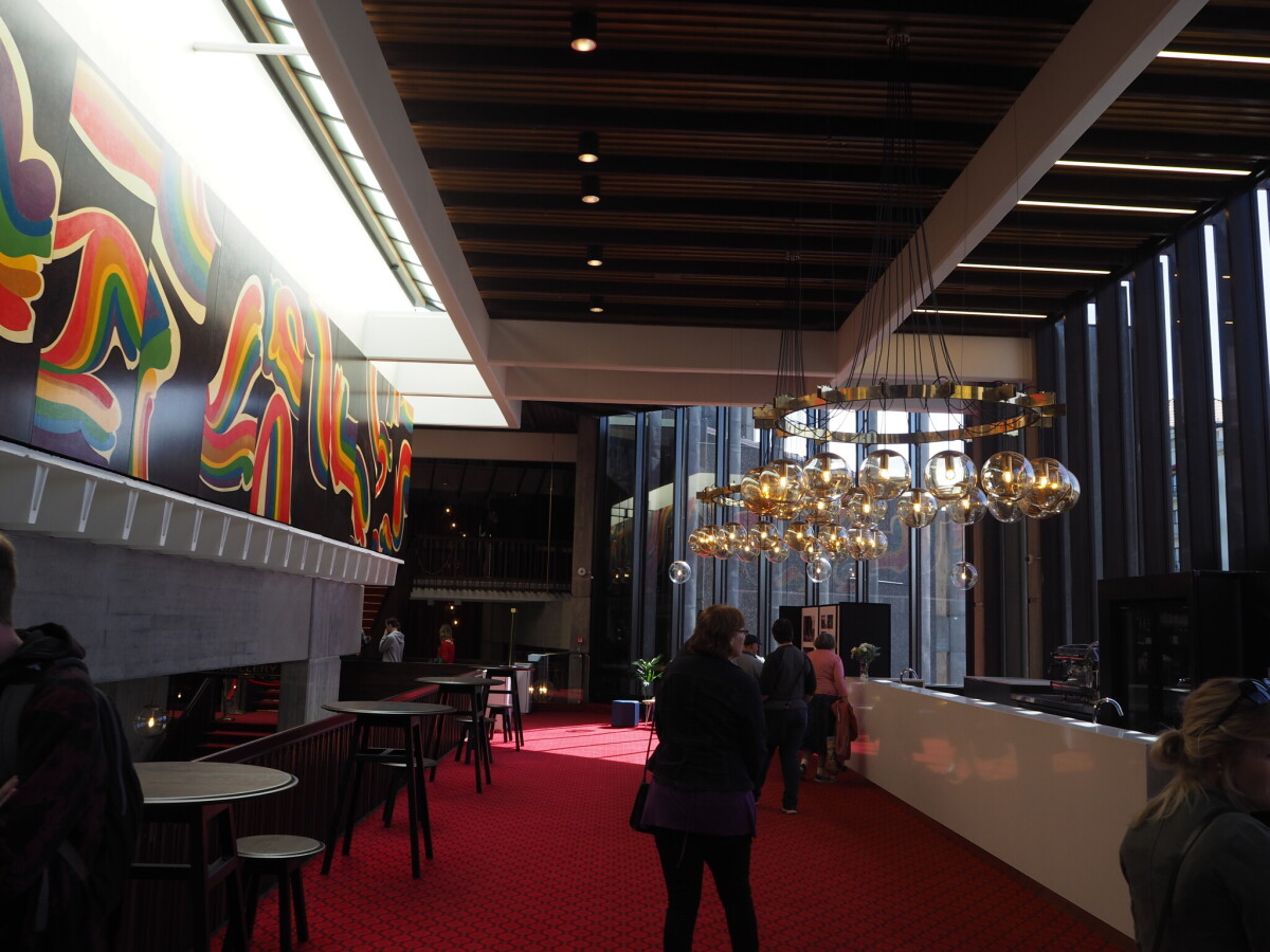 Pat Hanly artwork, lights and bar at Town Hall during open weekend.
