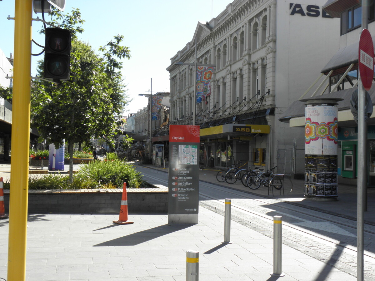 Not all masonry buildings suffered facade damage. Shops on Cashel Street, City Mall.