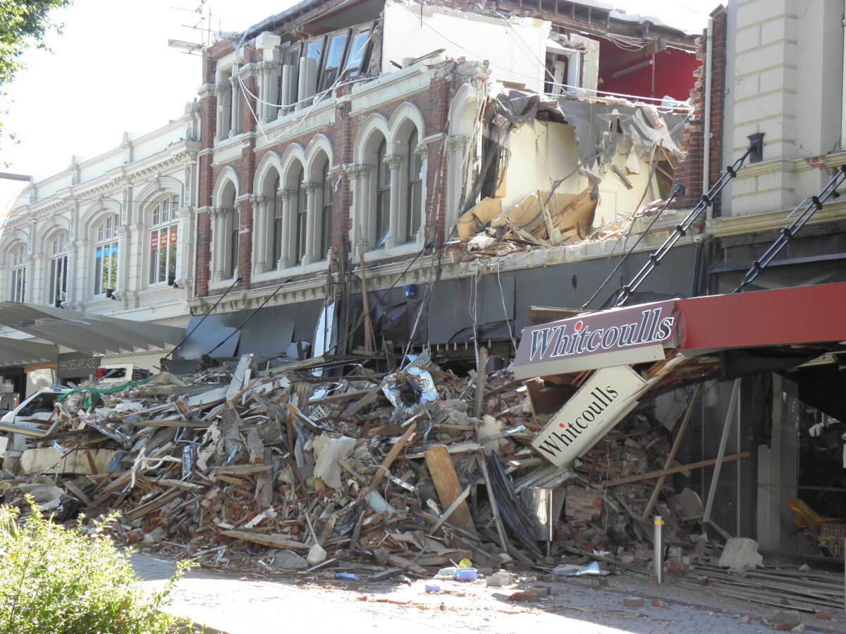 Earthquake damaged buildings on Cashel Street, City Mall.