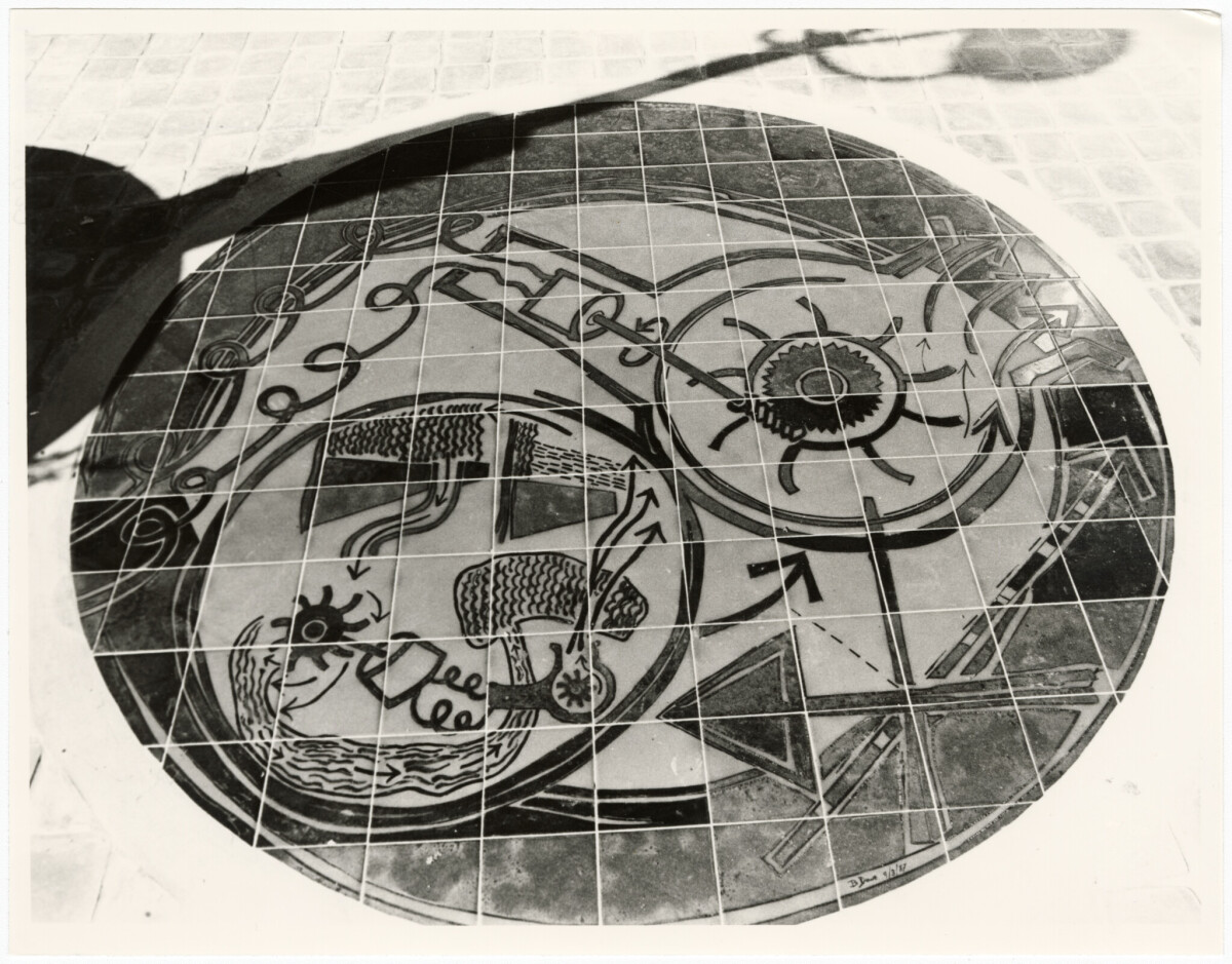 Artwork by Bing Dawe on the footpath outside the Municipal Electricity Department on Manchester Street.