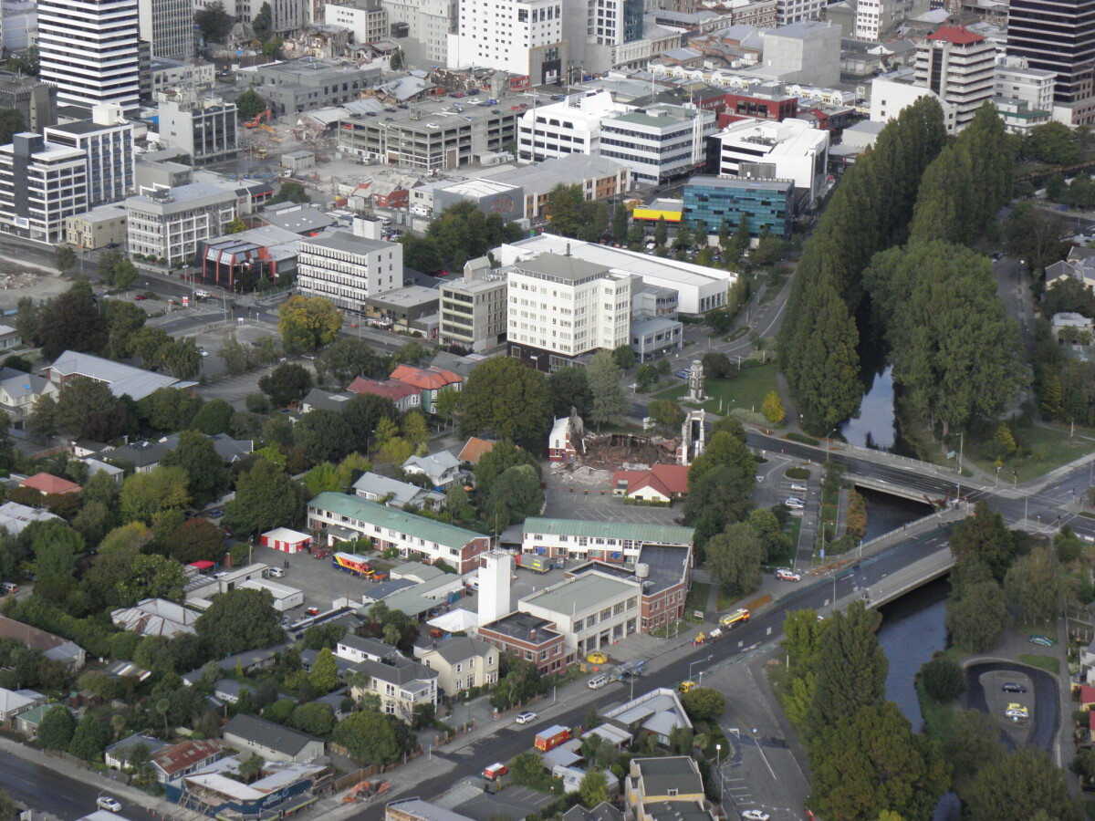 This photograph is taken outside the Christchurch Central Fire ...