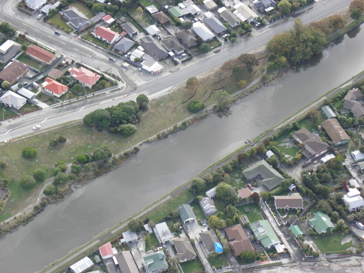 Aerial photograph of the Avon River - bank slumping in Bexley, East Christchurch