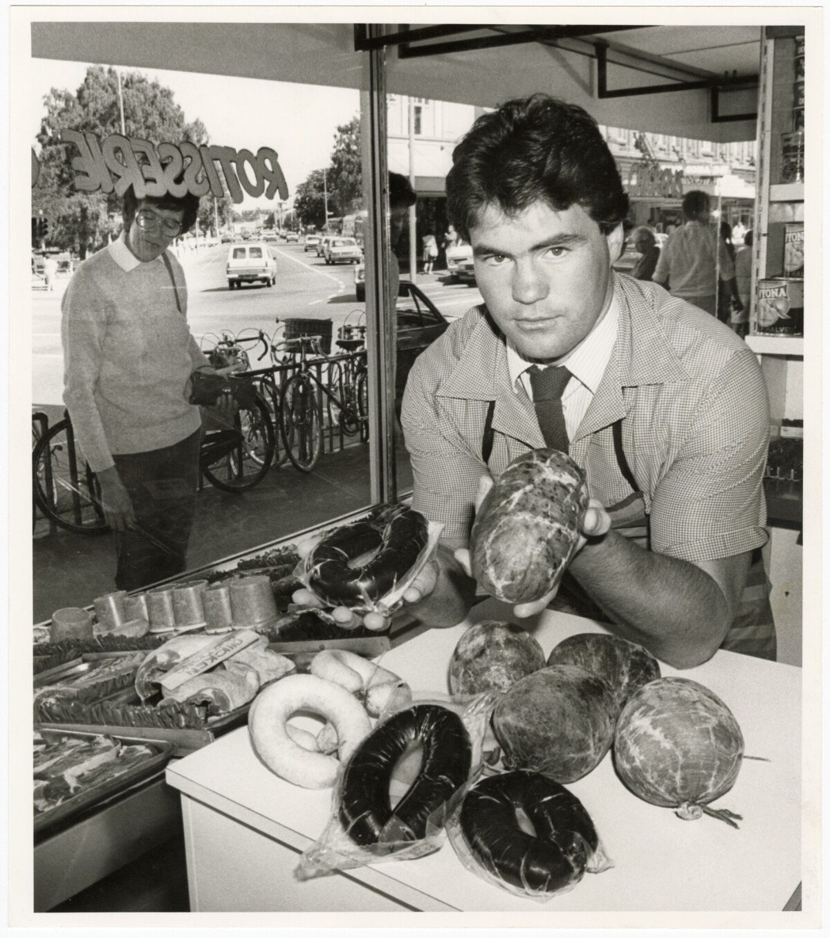 Dougal Adams of Newmarket Butchery, Colombo Street, with haggis packed in ox bungs.