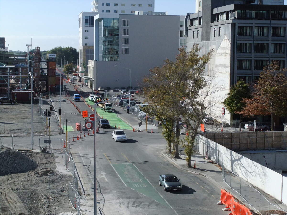 View from Christchurch Central Library up Gloucester Street