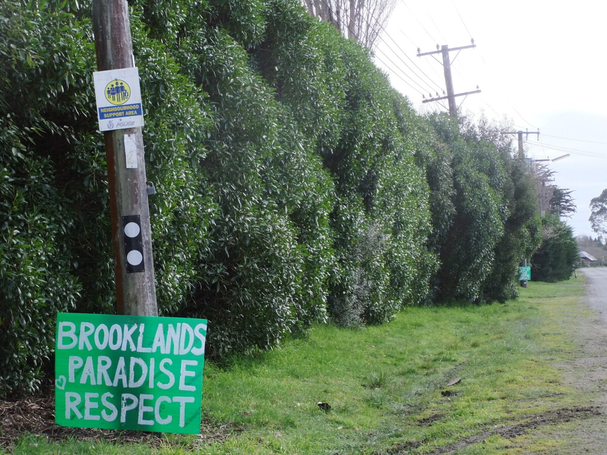 Plackard on a power pole - Brooklands Paradise Respect