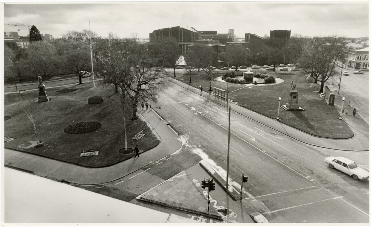 View looking towards Christchurch Town Hall and Victoria Park with Victoria Street running through the centre.