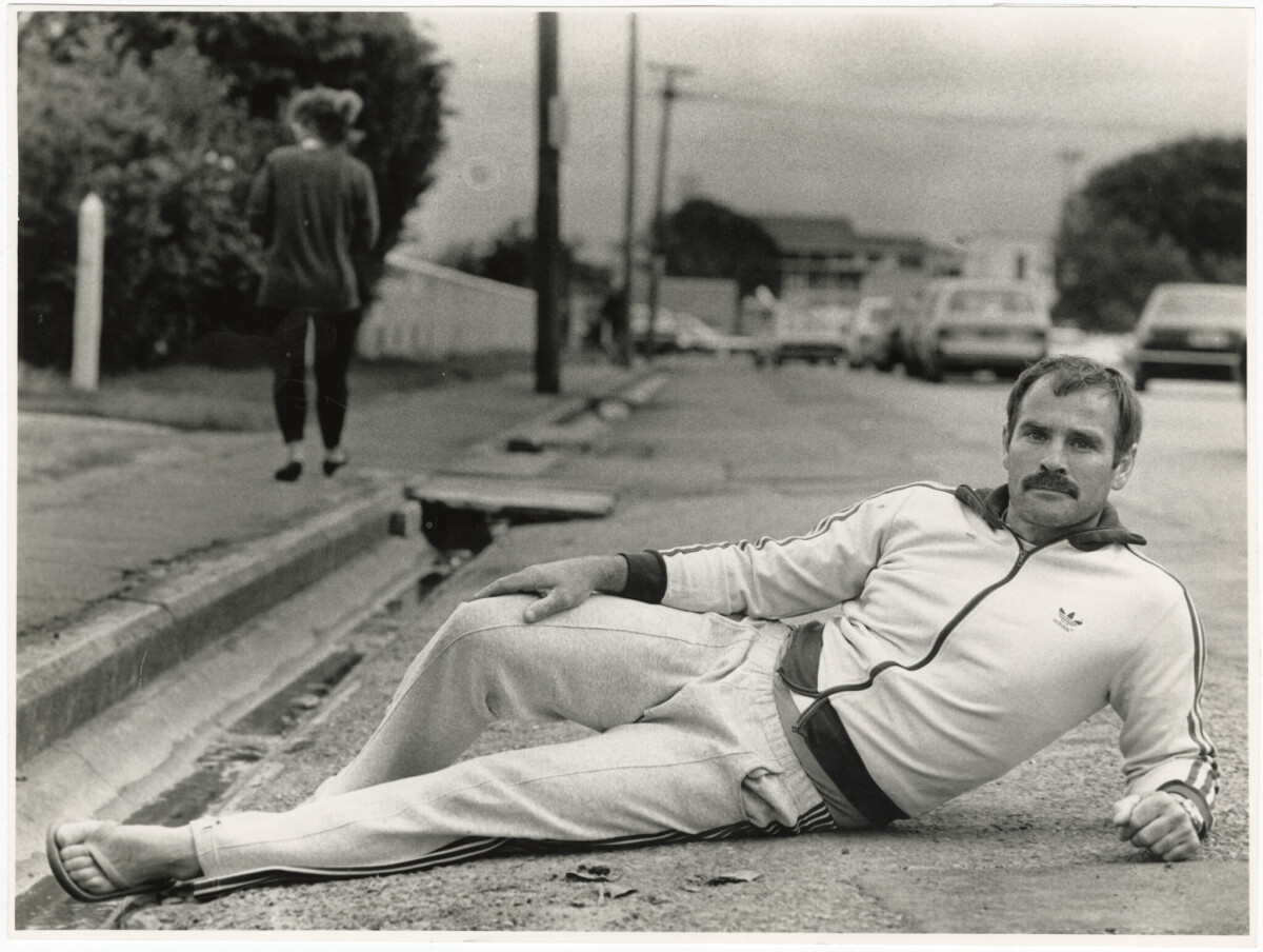 Tom Turner lying on Lindores Street, Addington in protest of traffic officers try tow the vehicle of his paraplegic neighbour.