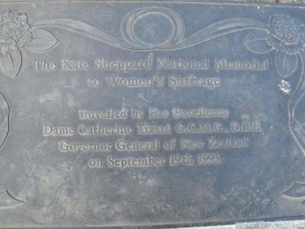 Plaque on the Kate Sheppard National Memorial