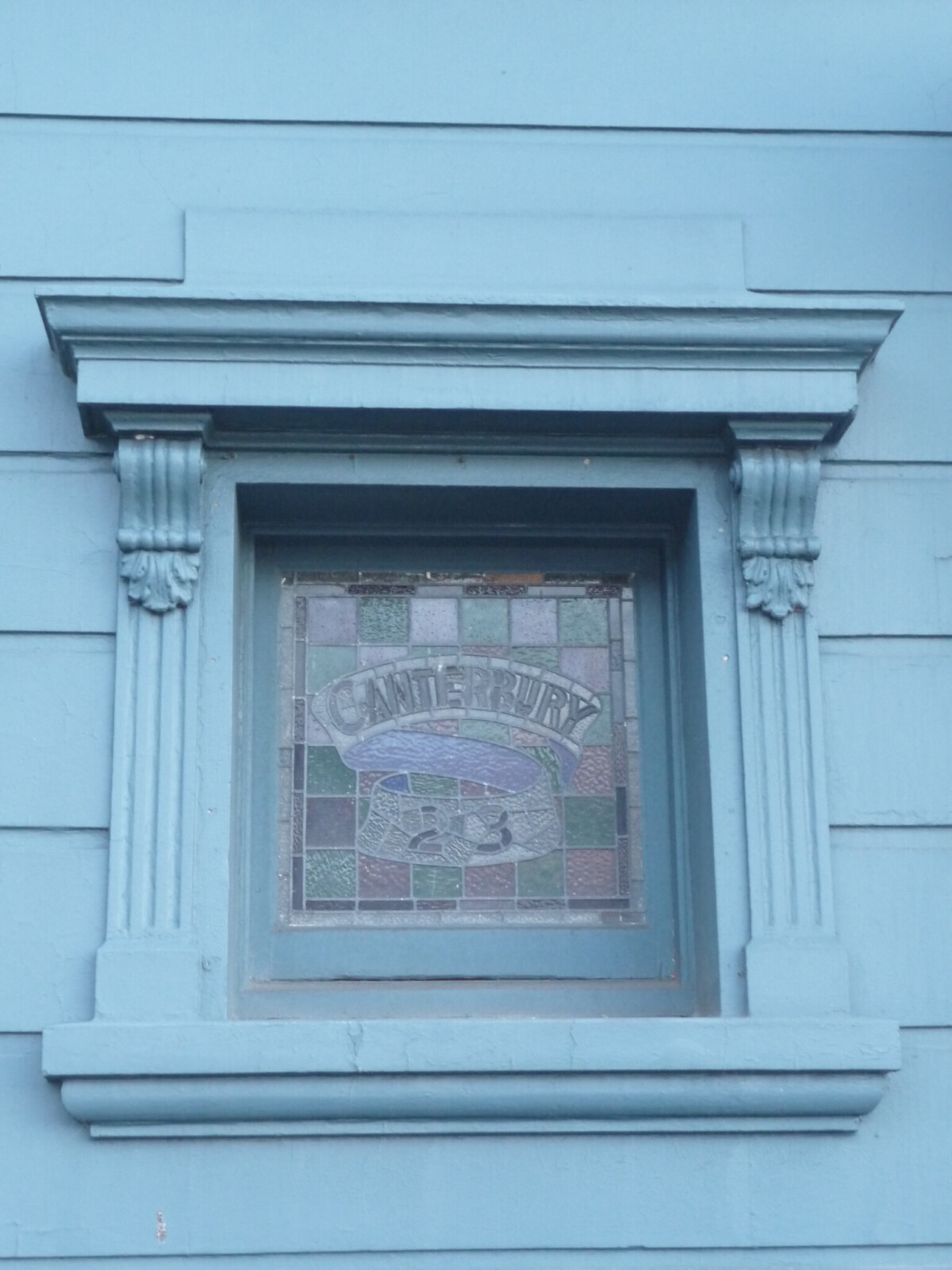 Stained glass window of former Freemason's lodge, Kilwinning Lodge, 26 Canterbury Street.