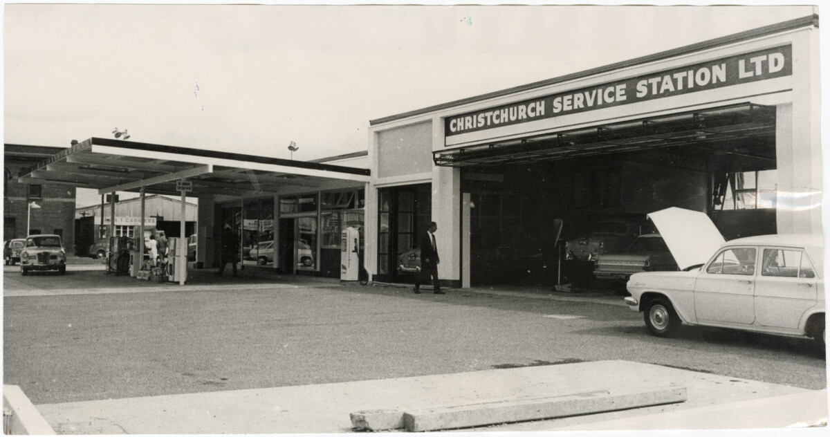 Christchurch Service Station at the corner of Colombo, Cass and Sandyford streets.