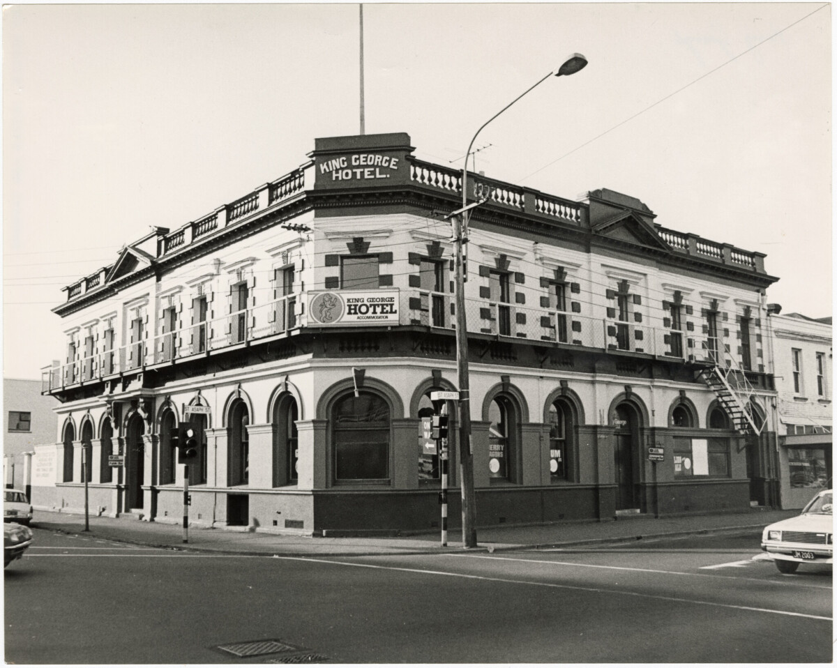 The King George Hotel on the north eastern corner of Madras and St Asaph streets.