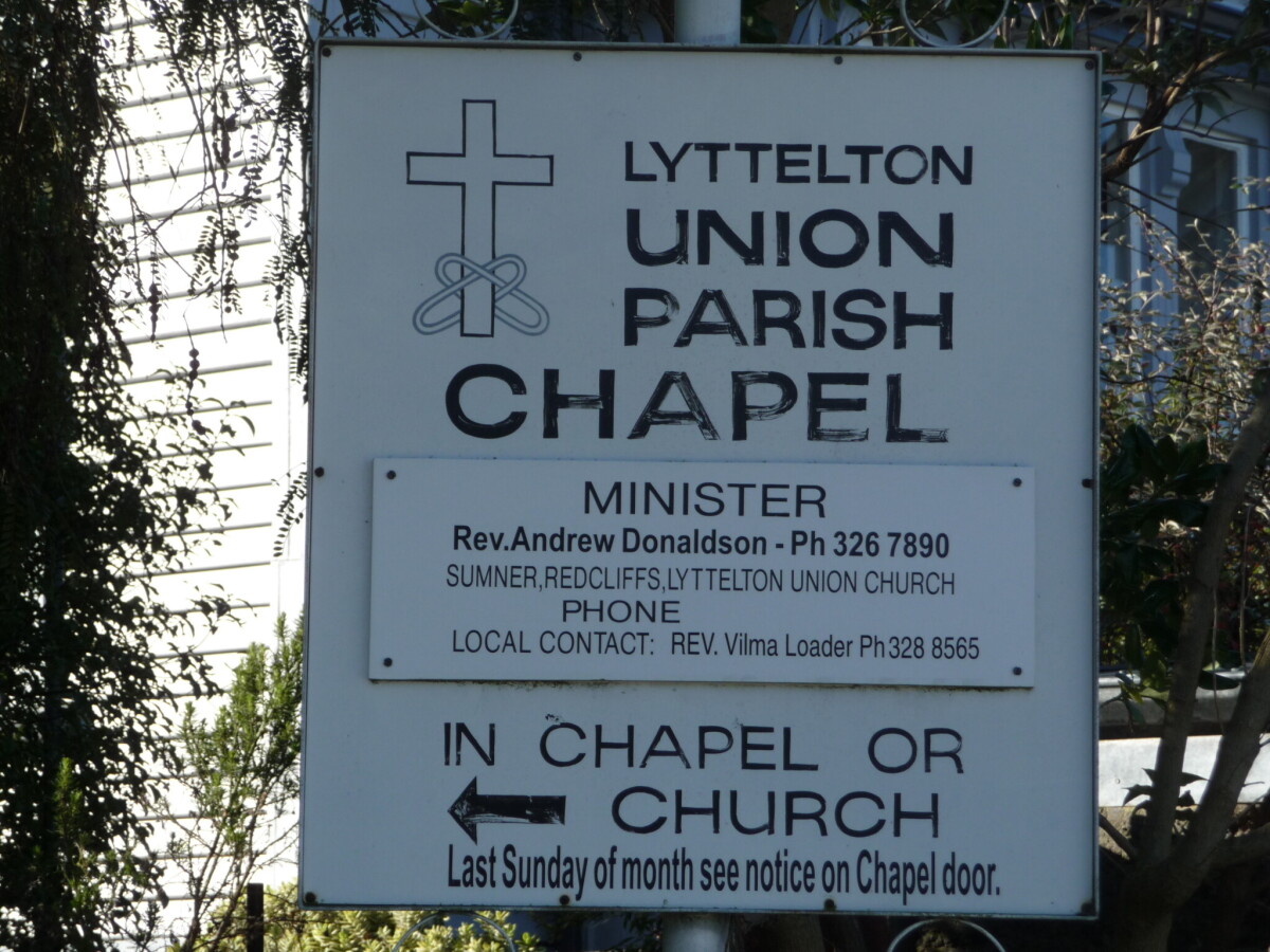 Sign for Lyttelton Union Parish Chapel, 40 Winchester Street.
