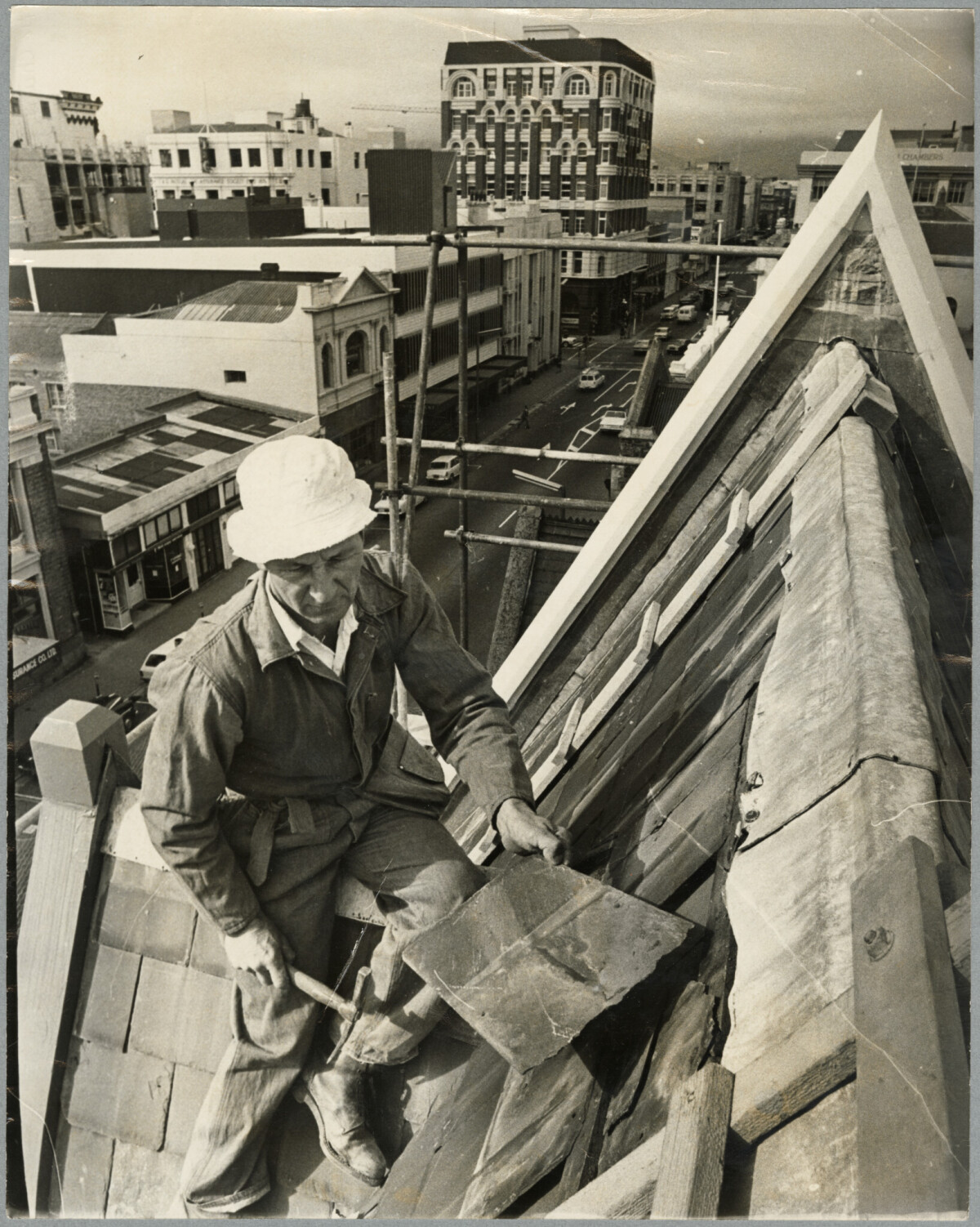 Peter Ballard on the roof of the former Trinity Church, now owned by State Insurance, overlooking Manchester Street.