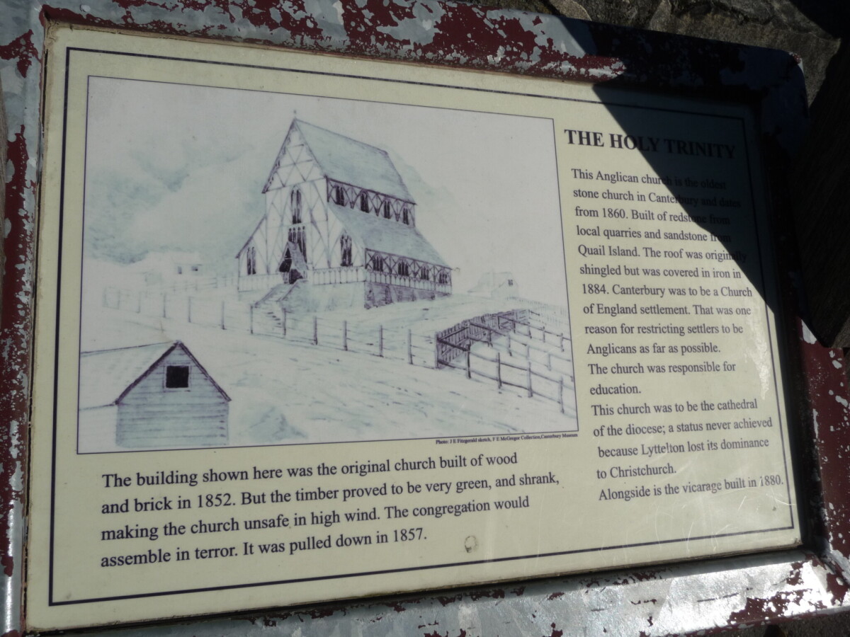 Plaque explaining the history of the Anglican church in Lyttelton.