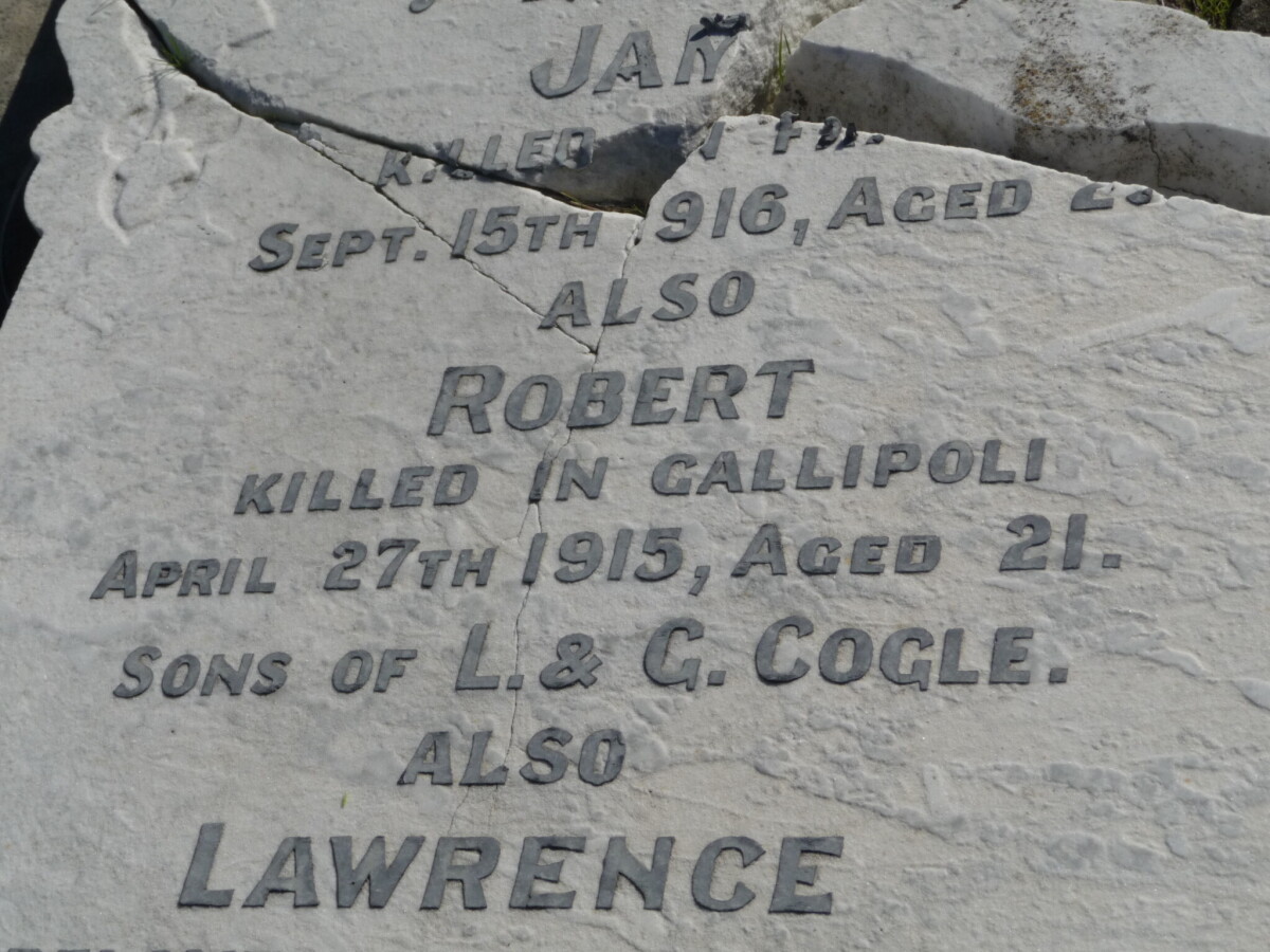 Headstone for Cogle family, Lyttelton Catholic and public cemetery.