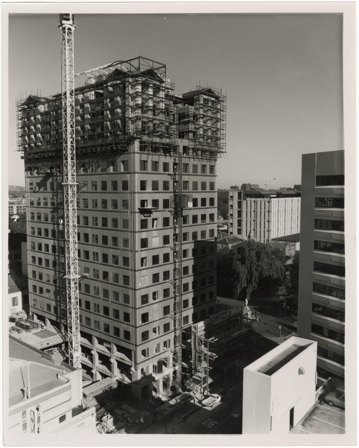 Construction of Clarendon Tower on the corner of Worcester Street and Oxford Terrace.