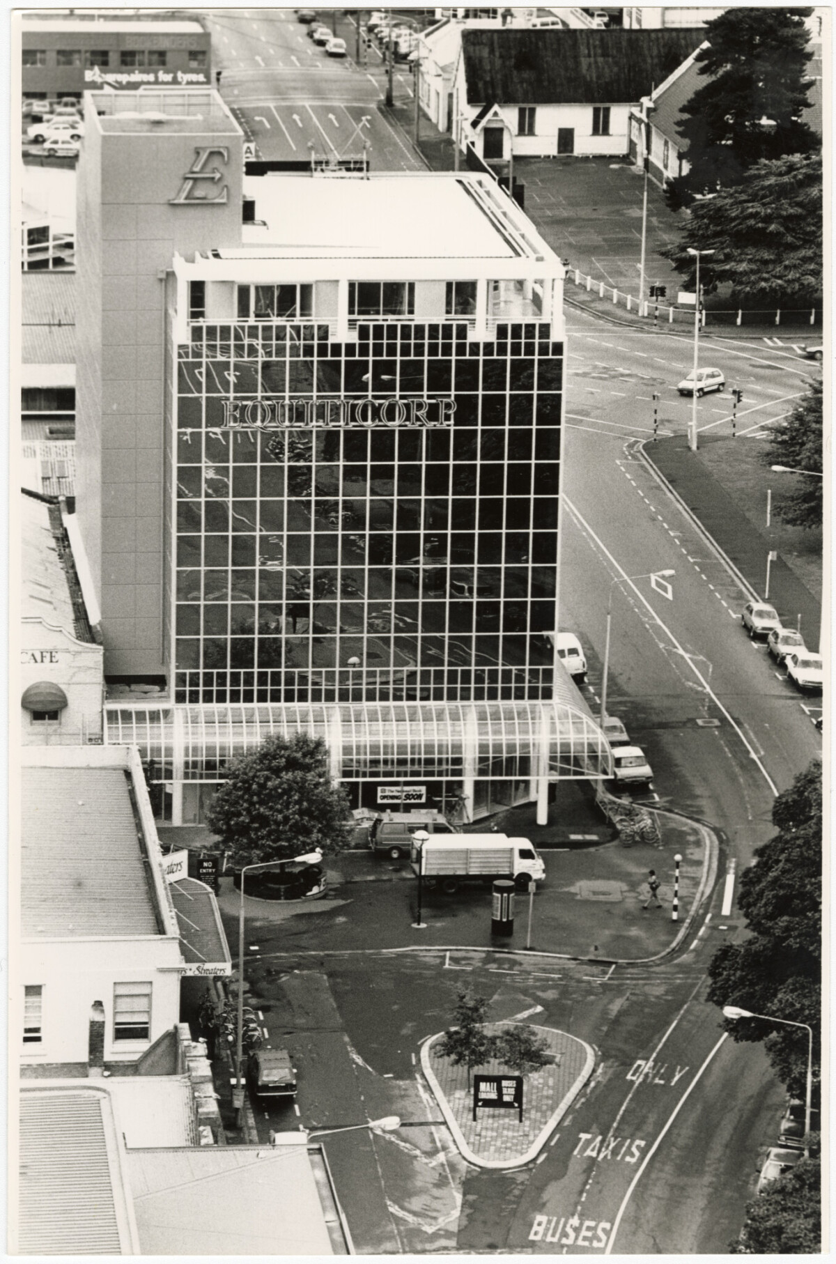 The Equiticorp building on the corner of Cashel Street and Oxford Terrace.
