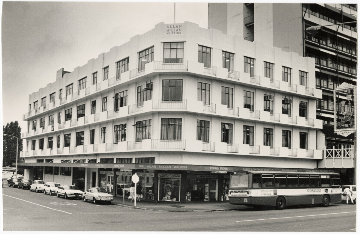 Allan McLean Building on the corner of Colombo Street and Oxford Terrace.