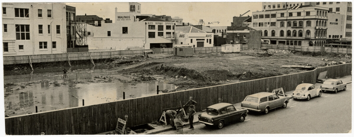 The site of the AMP building prior to construction in Worcester Street.
