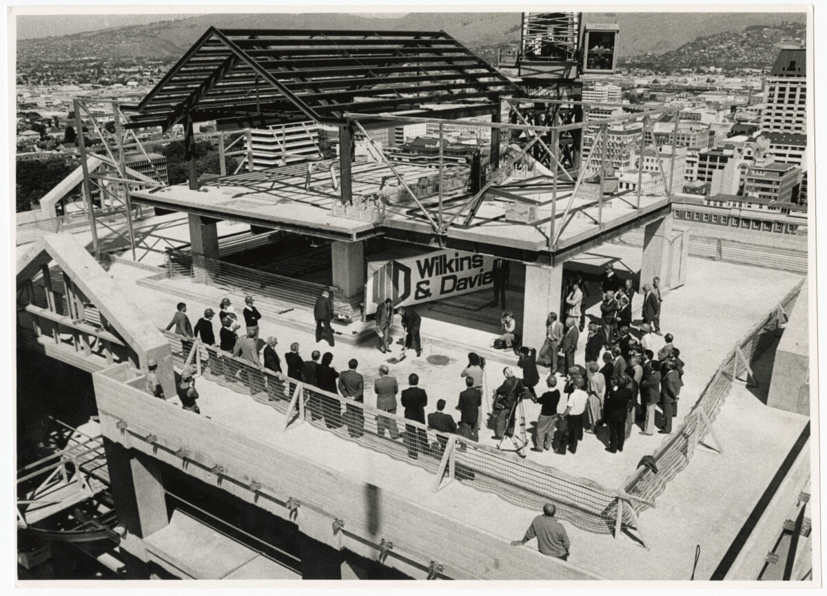Peter Steel, partner in charge of Price Waterhouse, laying concrete in the construction of the Price Waterhouse building.
