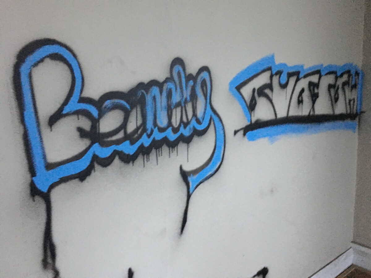 Wall art by a group of people who lived in the Vicarage during the Christchurch earthquakes period. The art talks about their love stories, belonging and loss.