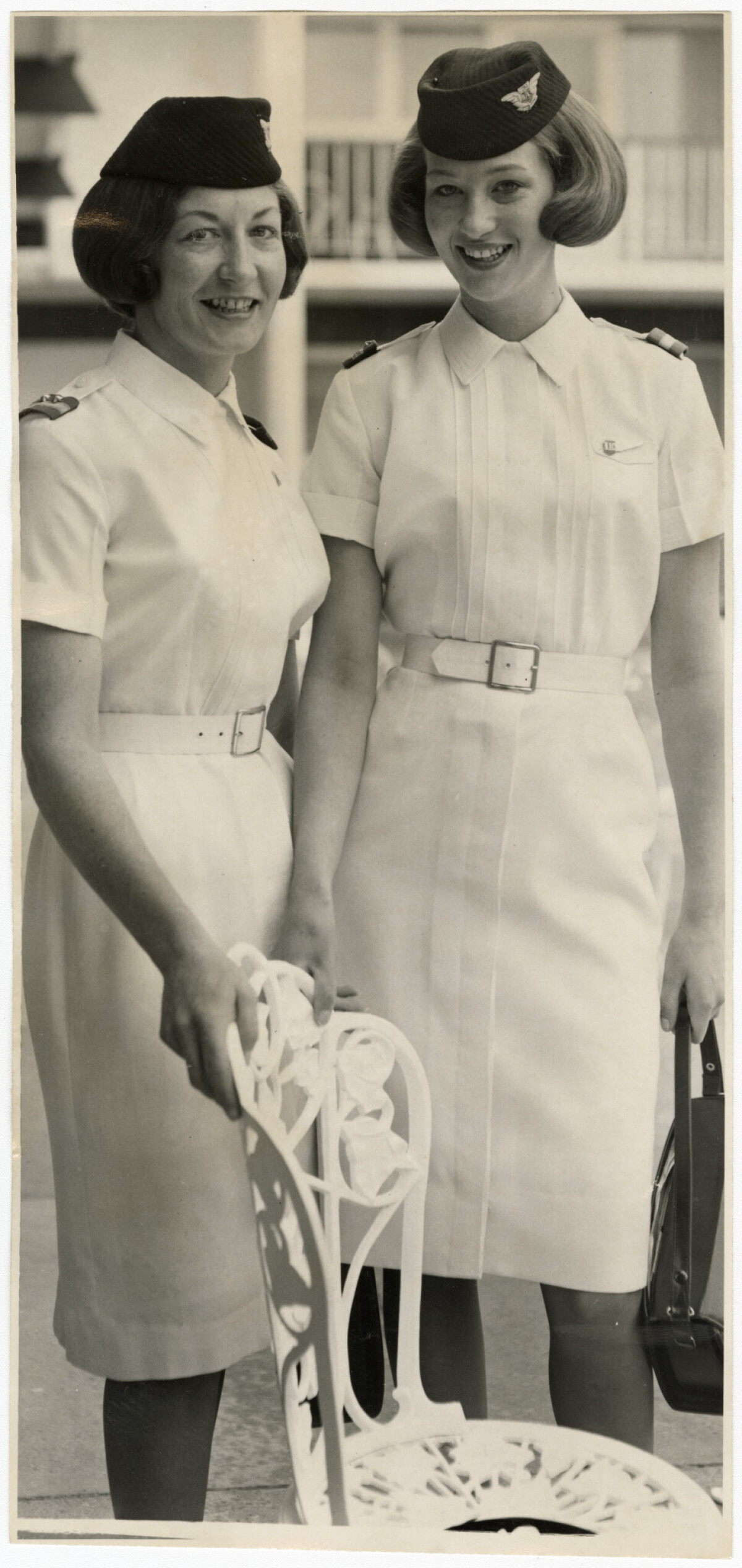 N.A.C. cabin crew members Lee Jackson (left) and Robyn Stewart, ahead of their journey to Europe to fly in a K.L.M aircraft to promote New Zealand.