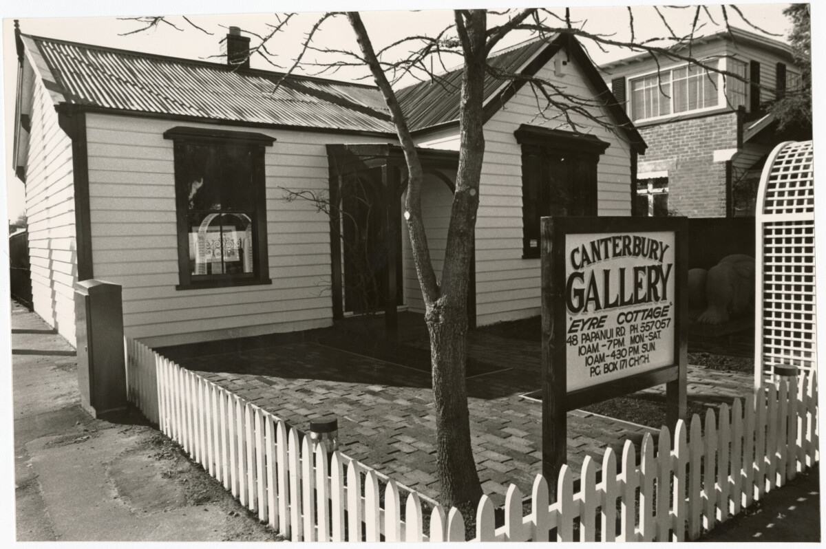 Exterior of the Canterbury Gallery, formerly Eyre Cottage, at 48 Papanui Road on the corner with Clare Road in Merivale. The gallery sits on the site of Christchurch's only remaining artisan-fed drinking fountain which prompted the gallery owner to consider changing the name of the gallery to the Drinking Fountain Gallery.