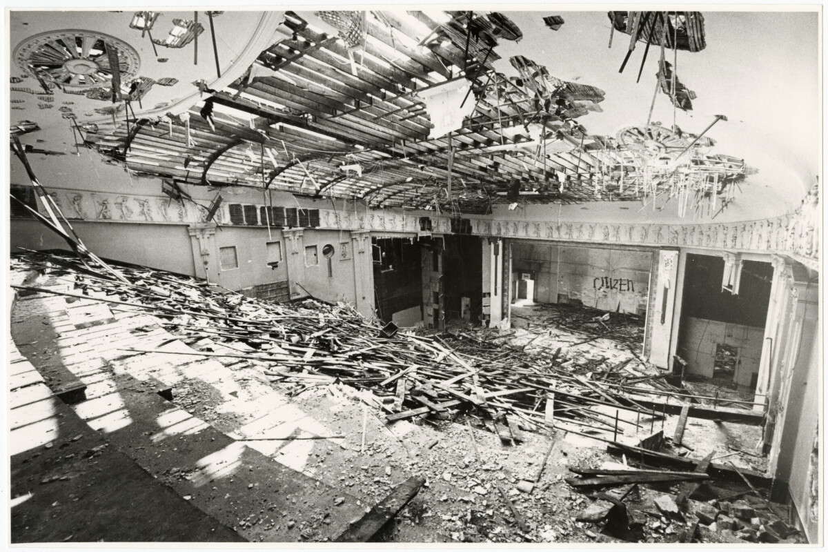 View of the interior of the Civic Theatre at 192 Manchester Street, during demolition works.