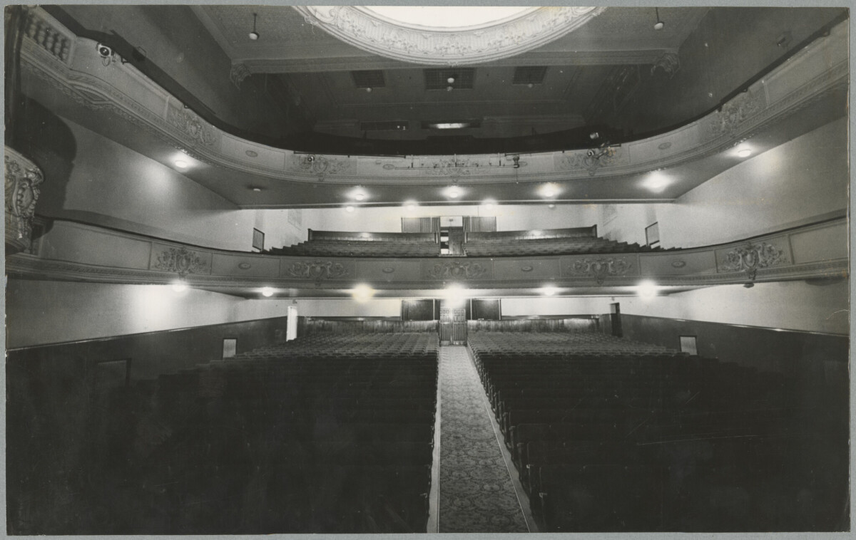 View of the seating inside the Theatre Royal on Gloucester Street, taken from the stage.
