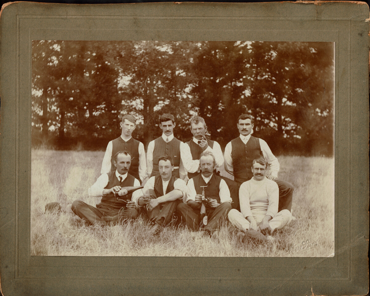 William May's Crown Brewery brew team. Brewery began in 1857 and was at the corner of St. Asaph and Antigua Sts., Christchurch.