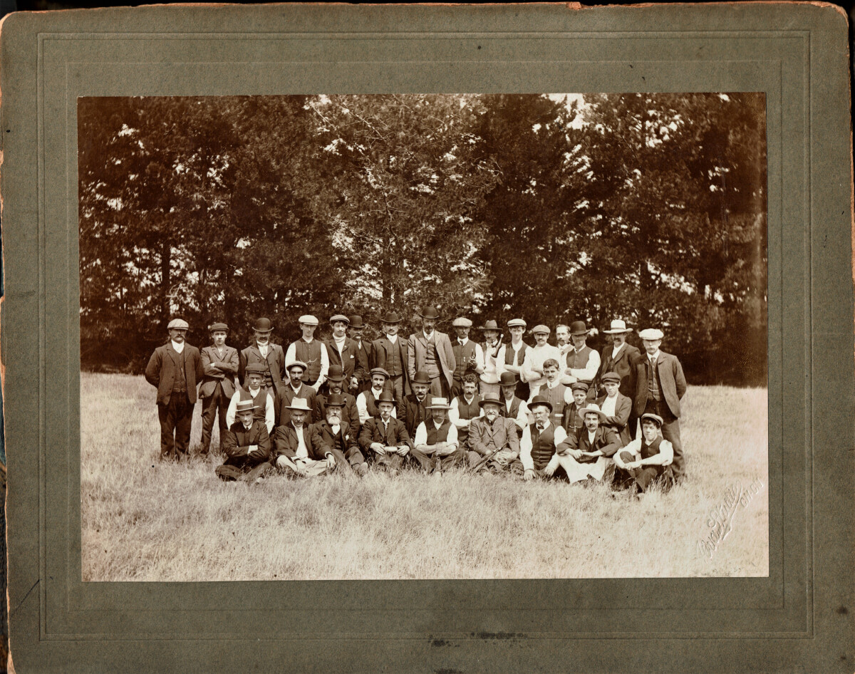 William May's Crown Brewery team. Brewery began in 1857 and was at the corner of St. Asaph and Antigua Sts., Christchurch.