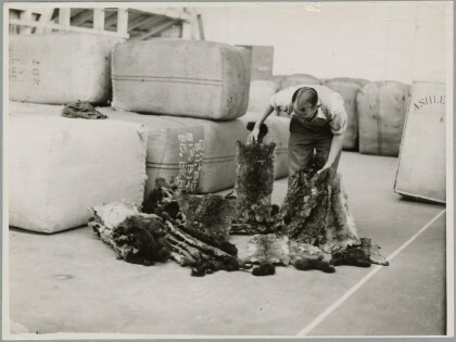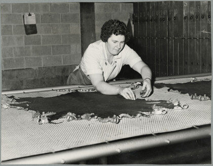 Tanners splitting a hide
