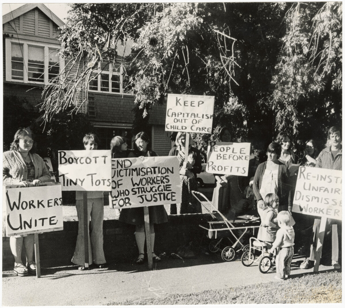 Staff of Tiny Tots Nursery School on Avonside Drive picketing following an employment dispute.