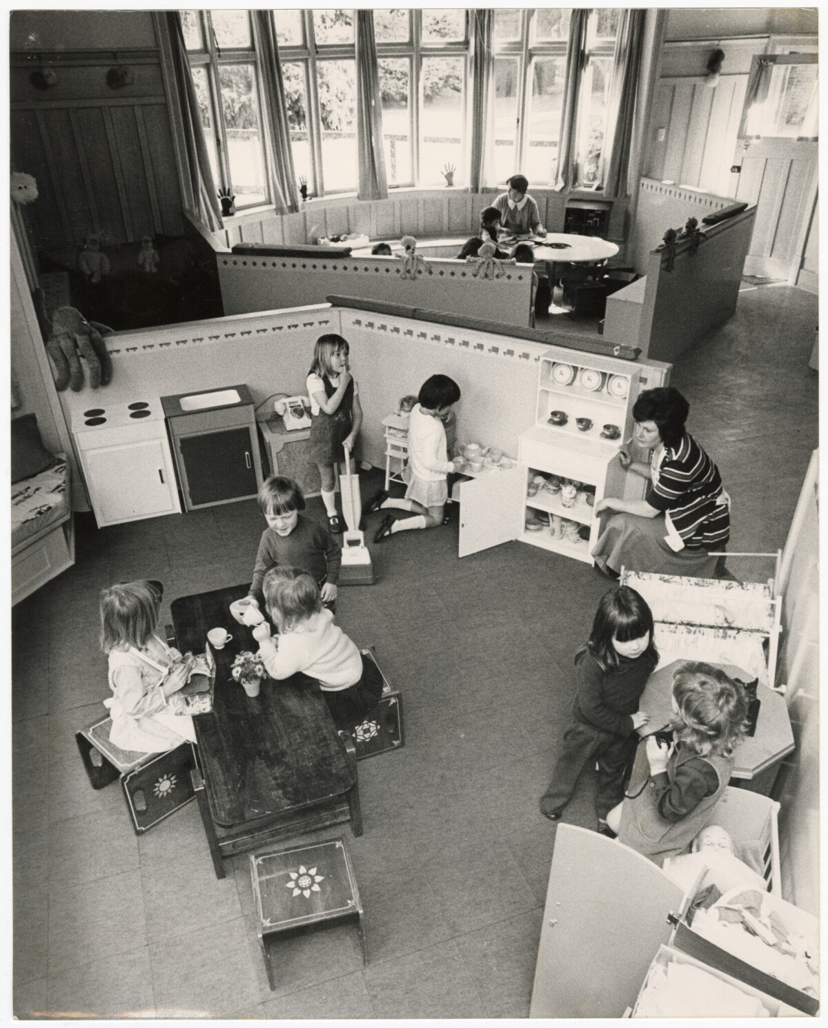 Lyn McCulloch supervising a group of children in a public child care centre jointly run by the Christchurch City Council and the Technical Institute in the former students union building on Montreal Street.