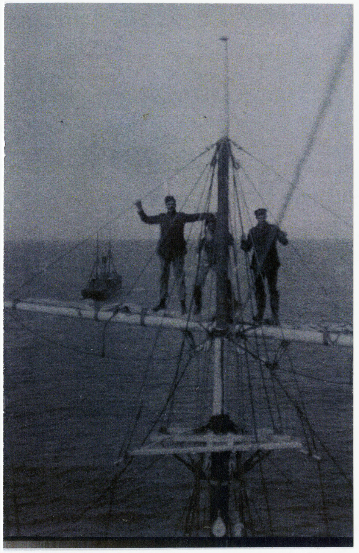 Crew of the Nimrod waving goodbye to the Koonya