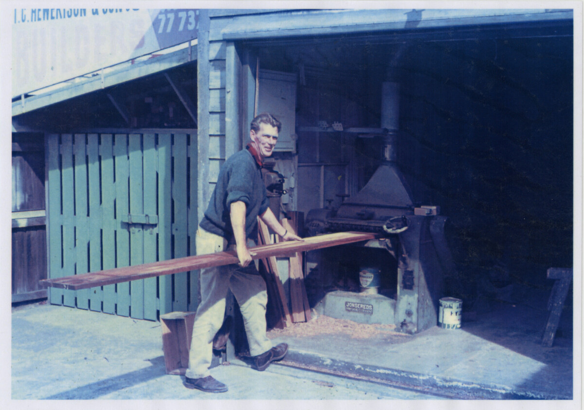 Tony de Vries putting timber through the thicknesser for shelving in the Self-Help shop in New Brighton in T. C Hewitson's builders yard, Duke Street, Christchurch.