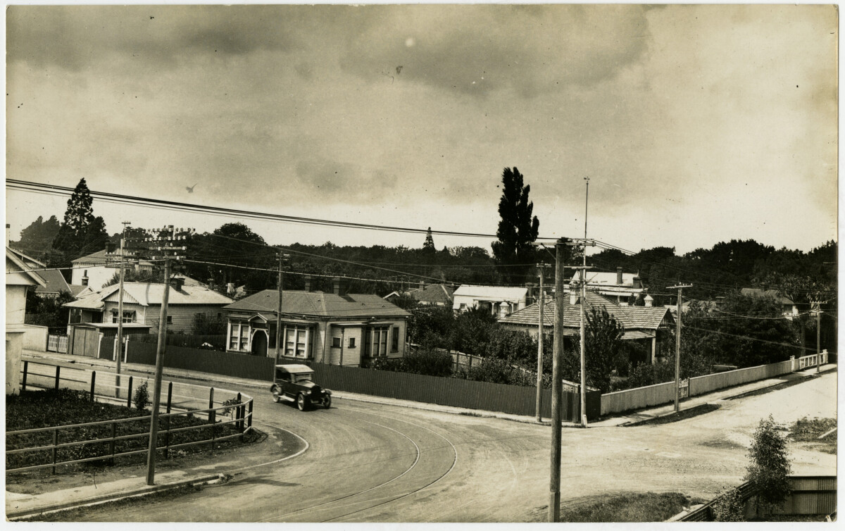 The corner of Rossall and Rhodes Streets looking south east. Taken by Charles John Beken, who built in 1909 and lived in the house at right with tiled roof & a two-storeyed workshop to the left that housed his photographic studio on the upper storey.