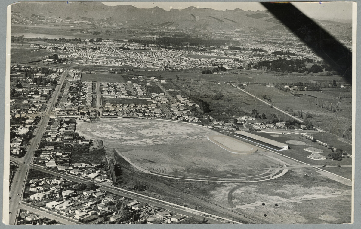 Aerial view of the construction of Queen Elizabeth II Park.