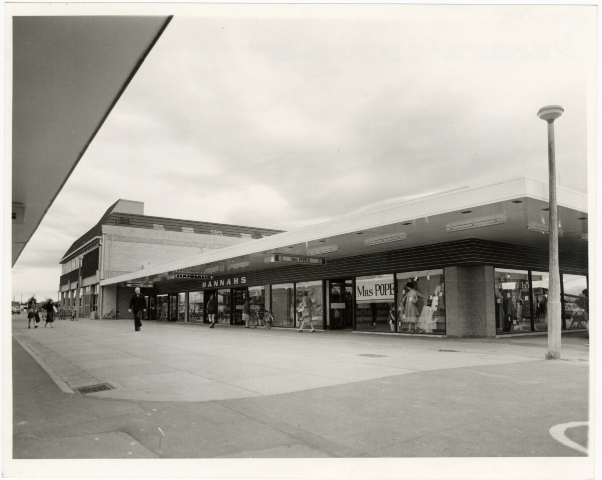 View of Hannahs and Mrs Pope's stores at Bishopdale Shopping Centre.