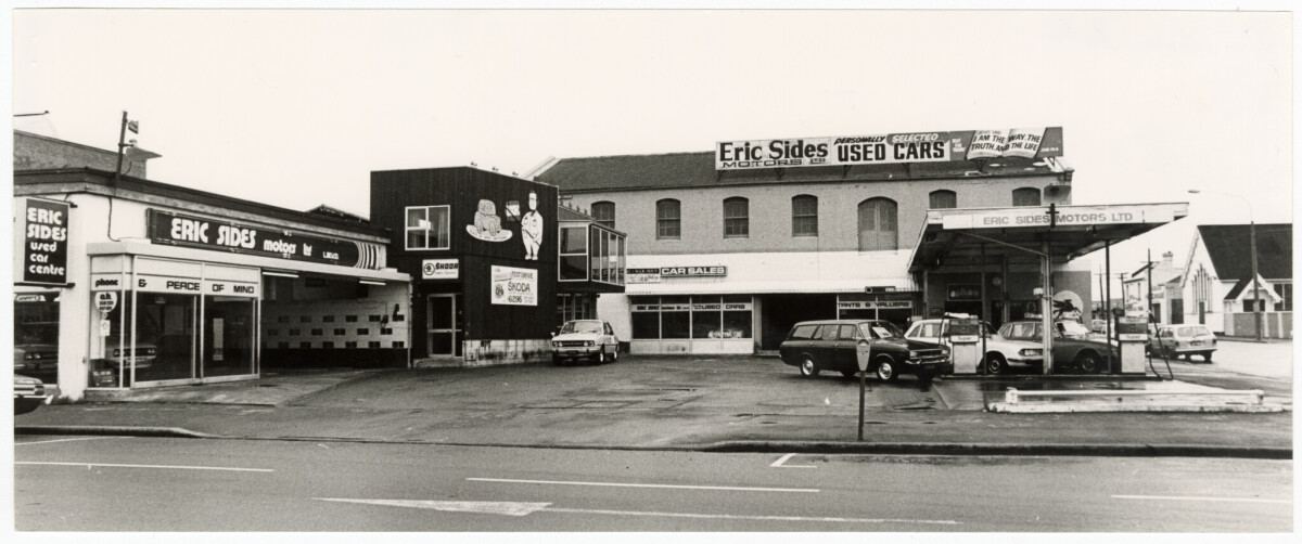 Eric Sides Motors on the corner of Durham Street South and Lichfield Street.