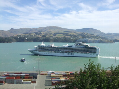 Diamond Princess cruise ship and tug leaving the container wharf ...