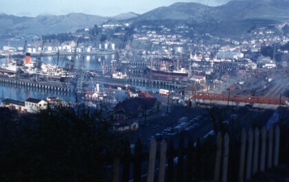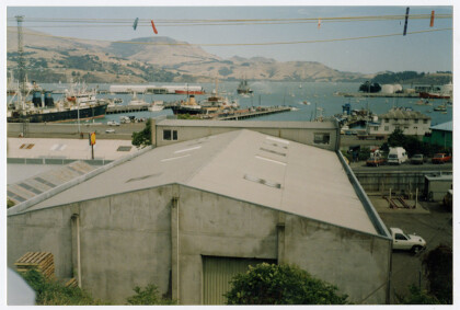 View of Lyttelton and Lyttelton Harbour from Sumner Road with a ...