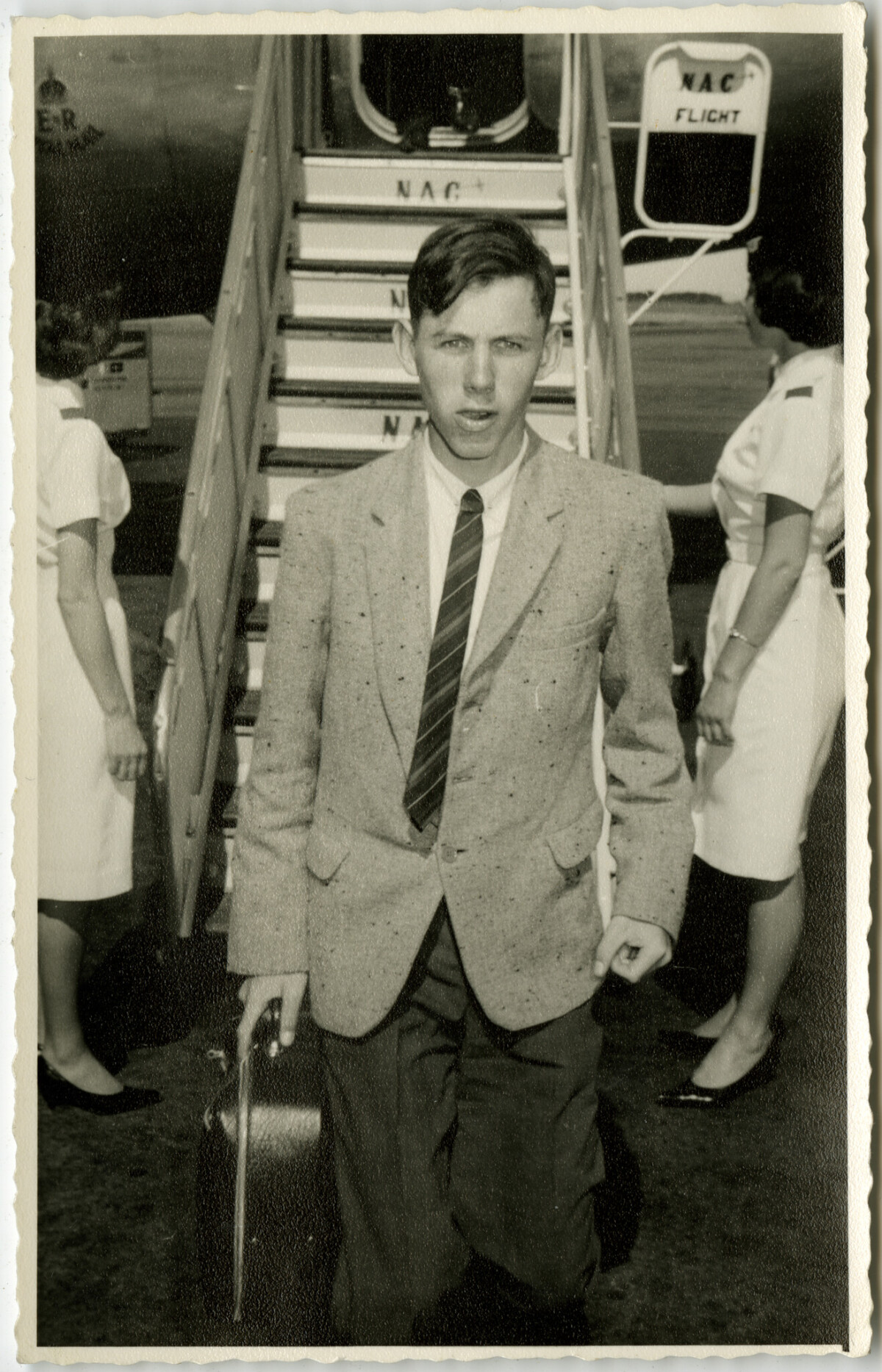 Alan Tunnicliffe's first flight. Arrival at Christchurch Airport December 1965 from Invercargil by N.A.C. DC-3 aircraft.