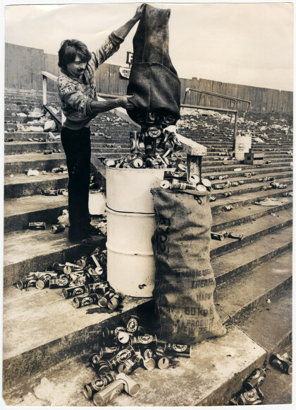 Student volunteer cleaning up Lancaster Park of beer cans ...